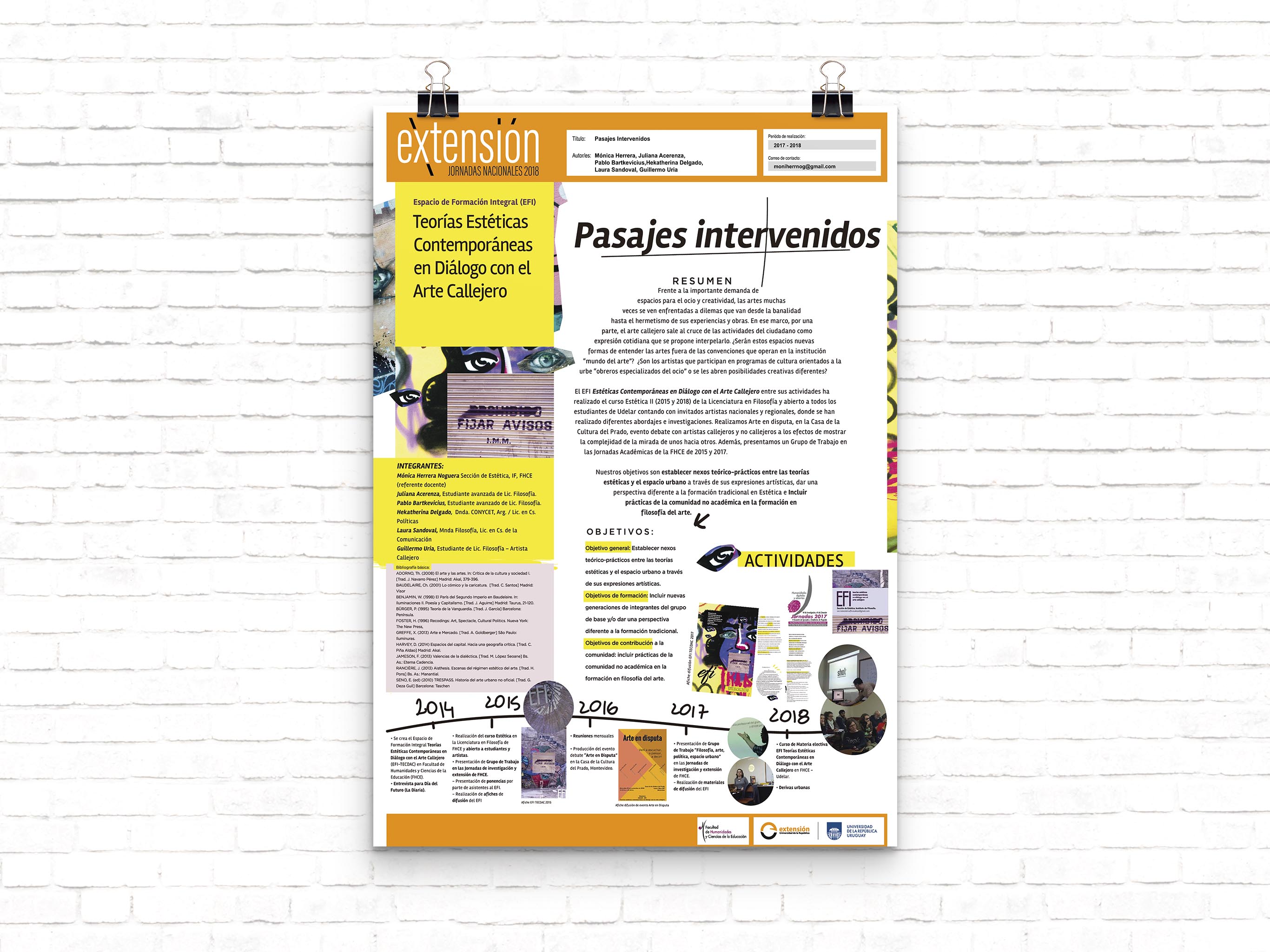 Diseño de poster científico para el Espacio de formación Integral, Teorías Estéticas Contemporáneas en diálogo con el arte callejero de la Facultad de Humanidades, Udelar.